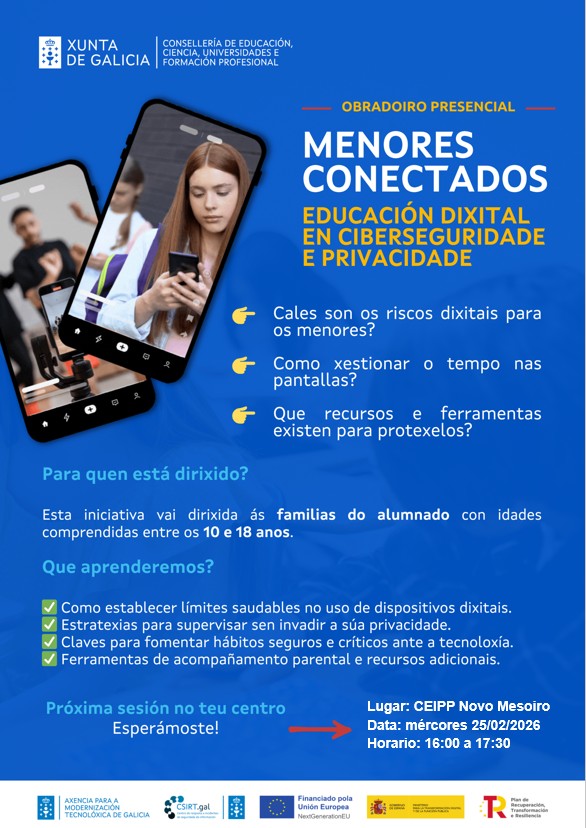 Charla para Nais, Pais e Titores: Menores conectados: educación dixital en ciberseguridade e privacidade